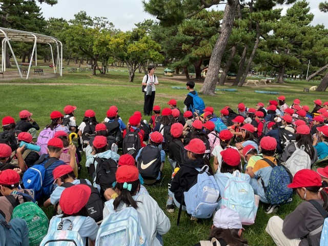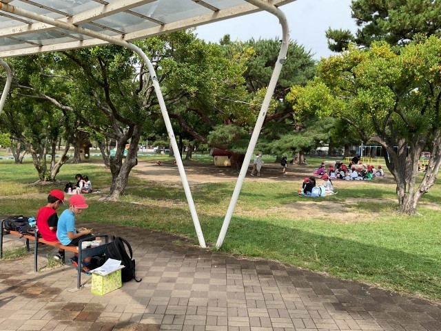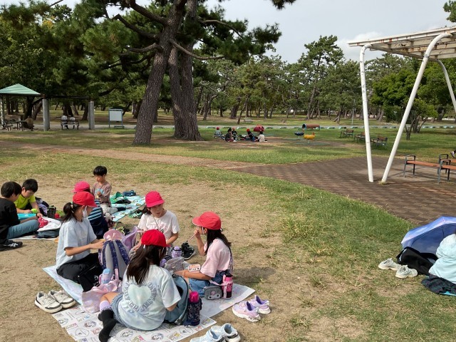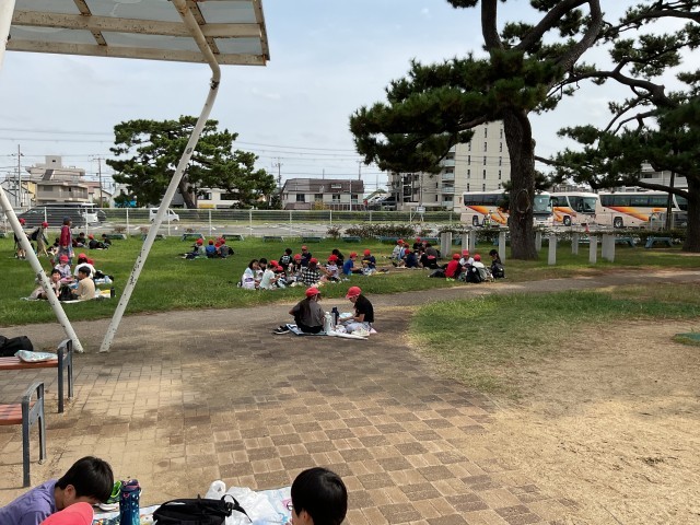浜寺公園に行き、楽しそうな遊具がたくさんある、広い公園で、みんなで美味しくお弁当をいただきました。