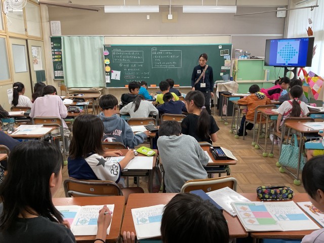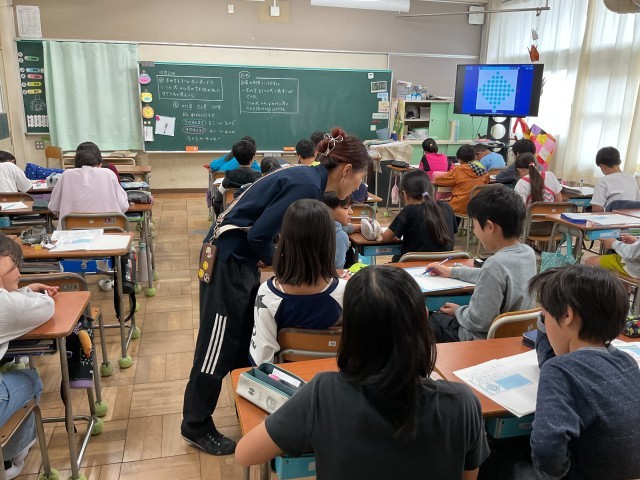 ドットの数を、どのようにしたら、一つの式で、調べることができるか、お友だちの考え方を聞いて、