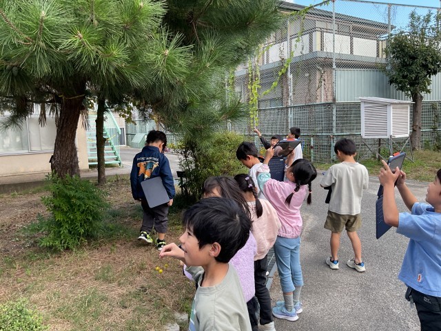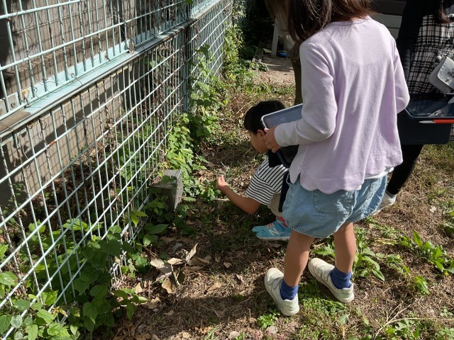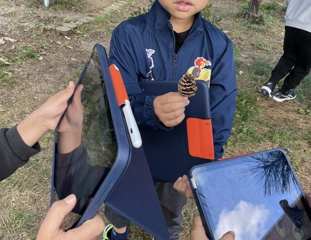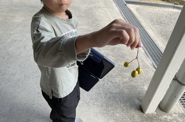 「何をしているの?」と聞くと、「秋見つけ!」と言って、見つけた秋を見せてくれました。