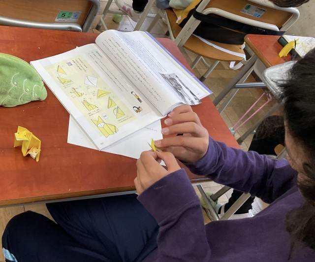 実際に折り紙を折り、さらに、考えを深めます。