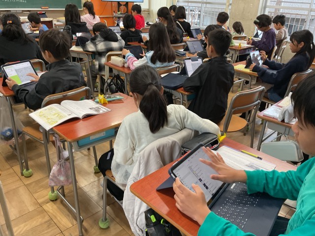 5年生の道徳です。ローテーションで、教員が、学年の他クラスの授業を行います。