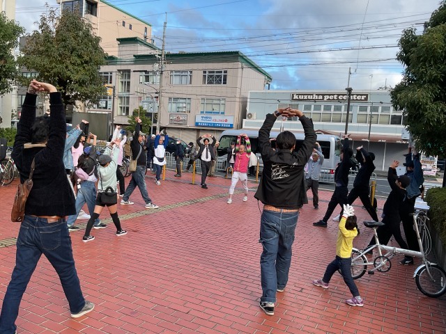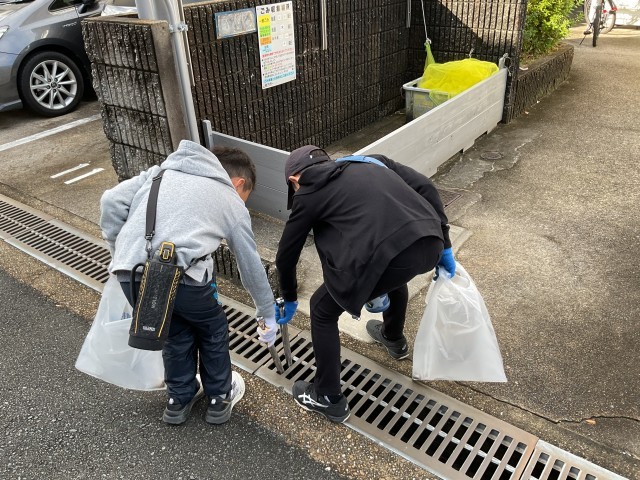 北部支所前広場に集合し、簡単なストレッチの後、分担を決めて町の清掃をします。
