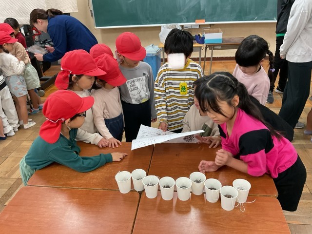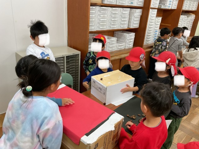 1年生が、くずはあけぼの保育園の5歳児さんをお迎えして、秋見つけで見つけてきた