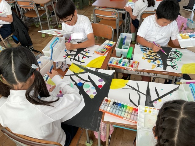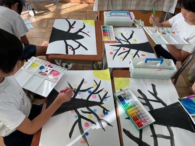 水を多めに、にじませて、一人一人の個性が光るもちもちの木です。