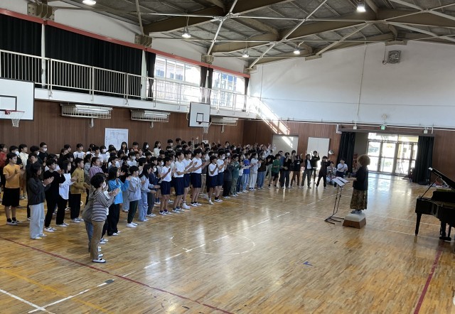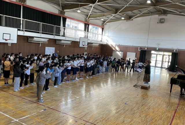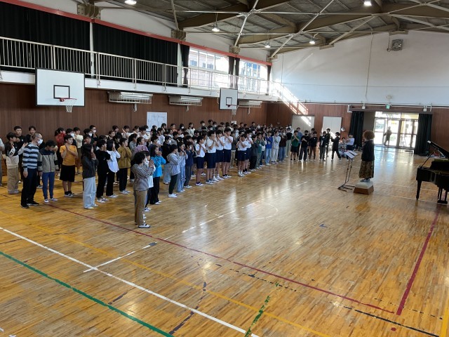 6年生が、明後日、出場する枚方市合同音楽会に向けて、練習をしています。
