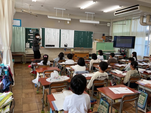 単元計画や場面ごとに学んだことを、壁面にはり、いつでも学びが振り返られるようにしています。