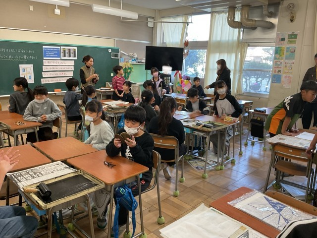 図工担当の教師と社会担当の教師の授業を参観してもらいました。