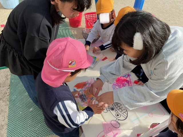 幼小連携、そして探究的な学びとして、5年生が、お昼休みに、樟葉幼稚園に遊びに行っています。