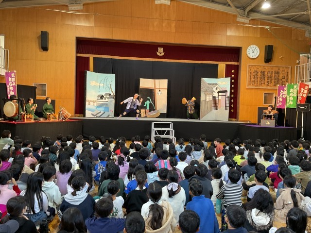狂言と和楽器の魅力を令和の時代の子どもたちが引き込まれる魅力的な舞台演出です。