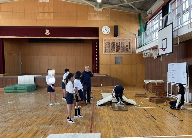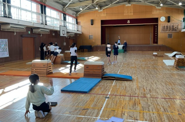 一人一人のできる技を組み合わせて、グループごとに、一つの演技として発表します。