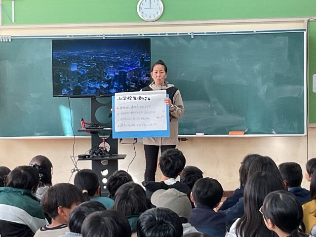 1年生と6年生で出会い、安心して小学校生活を送れるよう進めています。