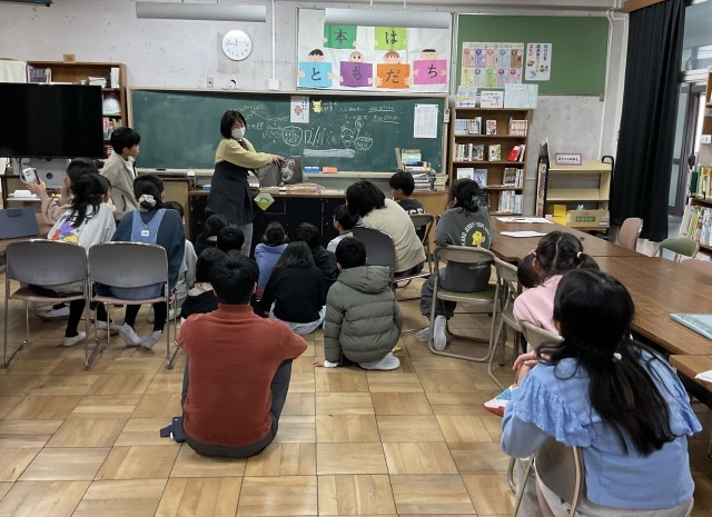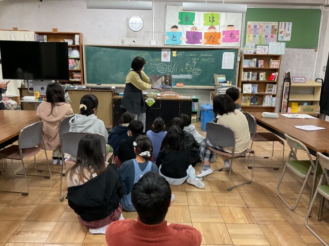 5年生の図書の授業では、ちょっと怖いお話の読み聞かせをしてくれていました。