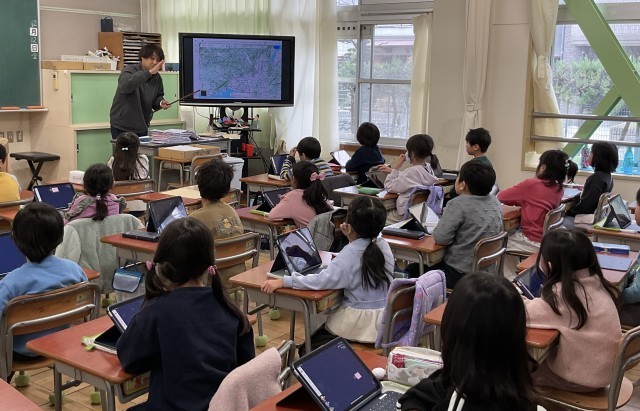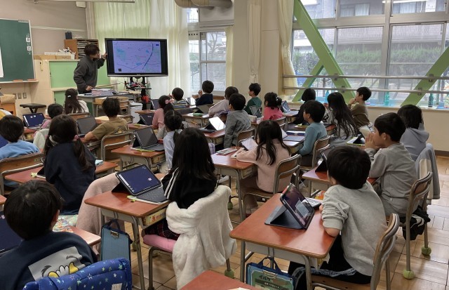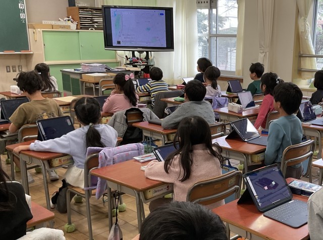 枚方市の他の小学校と、動画の見せ合いなどで交流し、伝え合います。