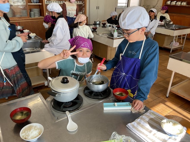 5年生の家庭科、調理実習「ご飯と味噌汁」づくりです。