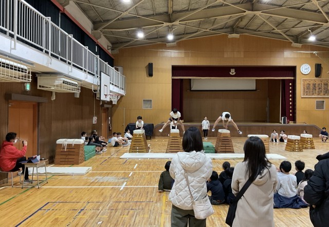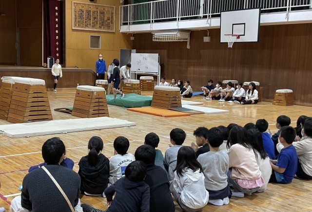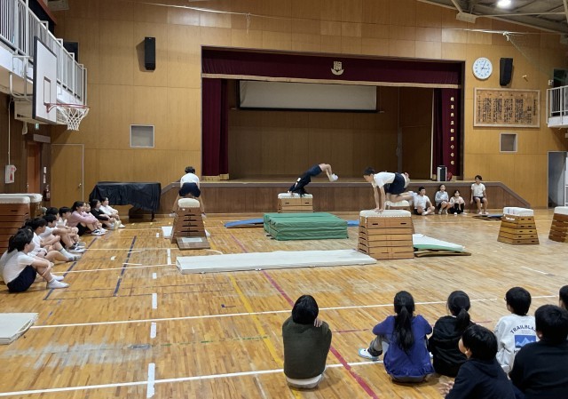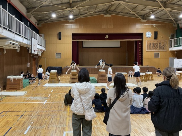 4年生もシンクロ跳び箱に取り組んでいるので、見学にきています。