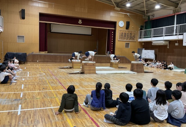 4年生からも、技が決まったり、見せ場だったりしたところでは、「おおー」と歓声が上がったり、