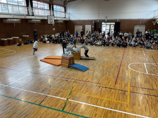 4年生は、先日発表した「シンクロ跳び箱」に、参加できなかった児童の発表を