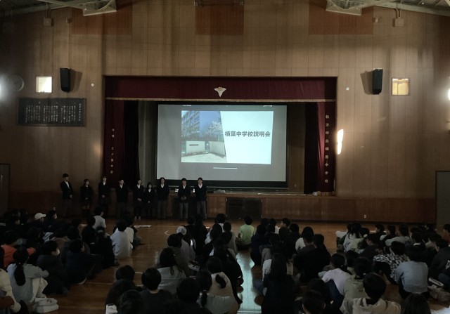 生徒会の生徒の皆さんが、中学校生活について、楽しい動画を制作して見せてくれたり、