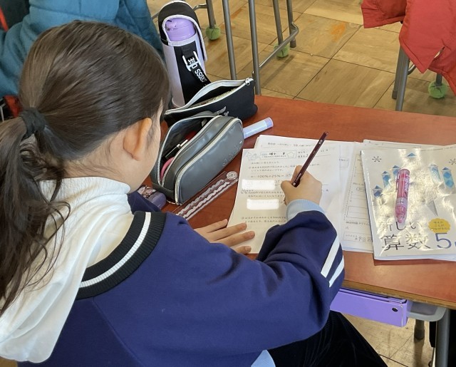 5年生の算数では、学びの終わりに小テストを繰り返し行い、