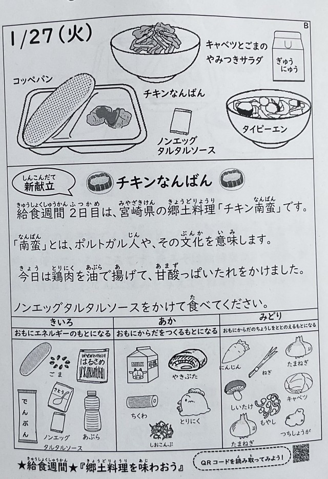 今日がチキン南蛮が出ました。