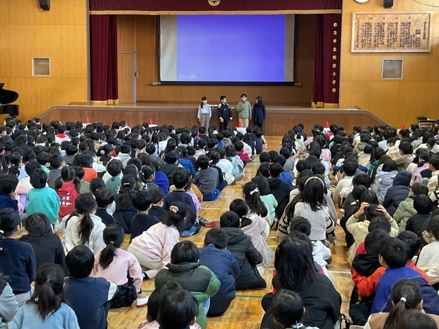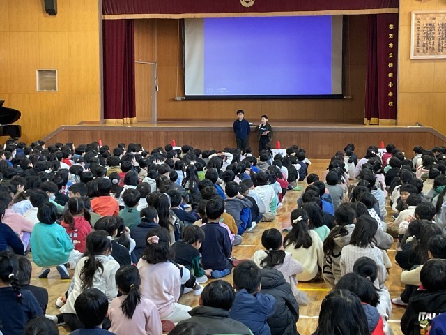 今日、1月28日(水)児童会委員さんが司会進行のもと、児童朝会を行いました。