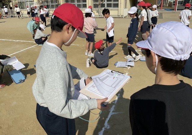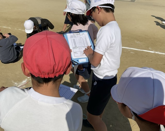 3年生は、運動場を8周走ったタイムを1周ごとにつけています。