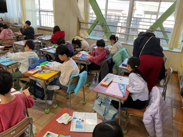 干支の馬や、鏡餅など、明るい色使いで仕上げて行きます.