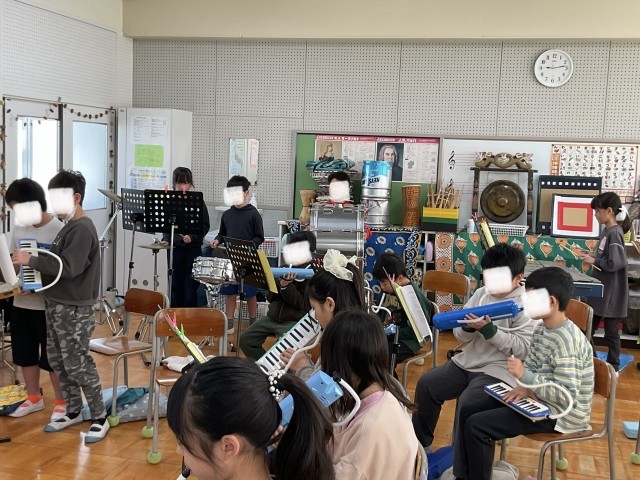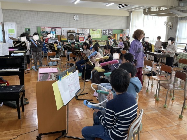 4年生の音楽、合奏の練習です.