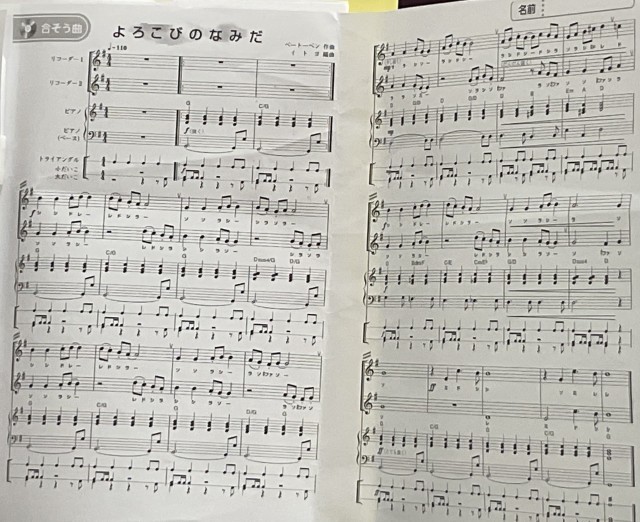 このクラスは「よろこびにの涙」を合奏します.