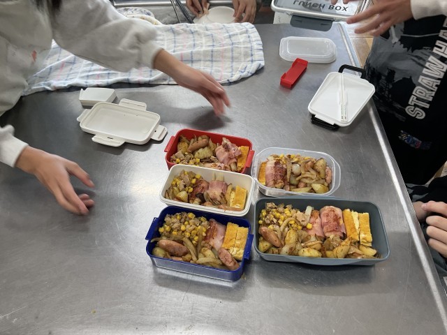 「茶色いお弁当になった」「けど、美味しそう」と見せてくれる班など、それぞれの工夫があり、