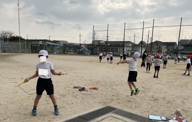 一人一人の縄跳びの技の練習のあとは、みんなで、