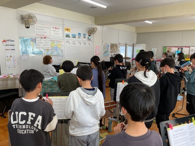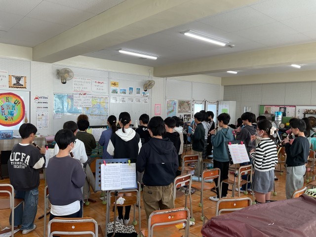 明日の児童朝会でも、児童の退場時に演奏する予定です。