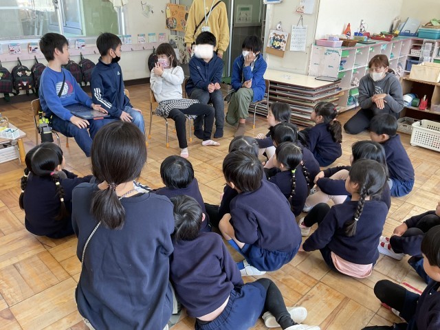 5歳児さんに、小学校の様子を伝えたり、質問に答えたりしていました。