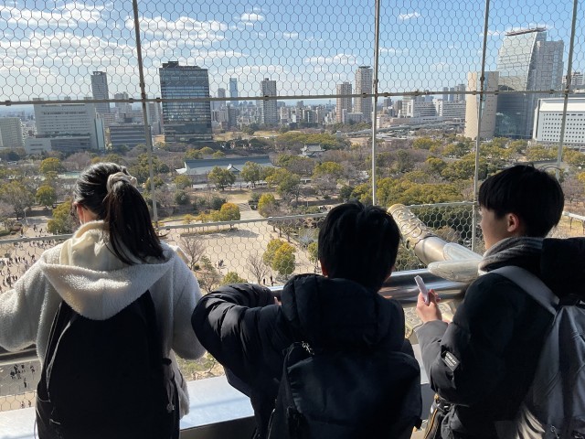 大阪城公園もグループで天守閣や戦跡等をめぐりました。