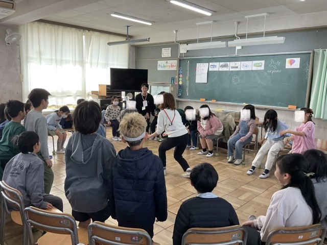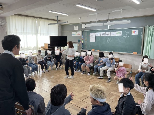 担任の先生が一緒にゲームに参加すると子ども達は大喜びです。