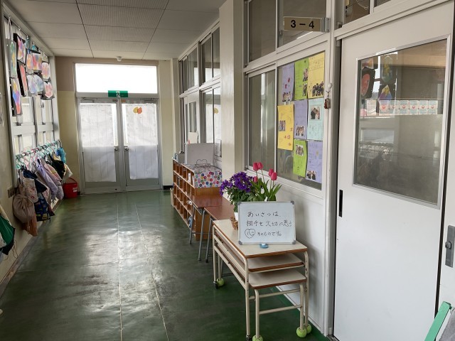 3年生の教室の前に、ウェルカムボードがあります。