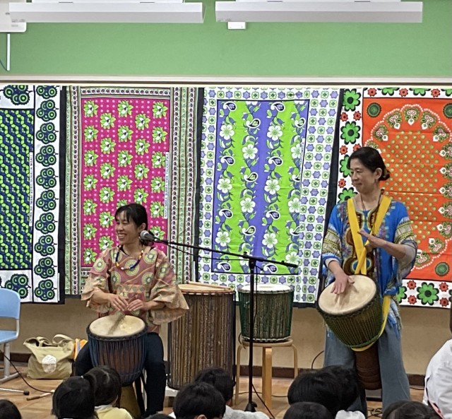 「ンコシアフリカ」の河辺知美さんと、北村圭子さんが、アフリカ楽器の演者としてきてくれました。
