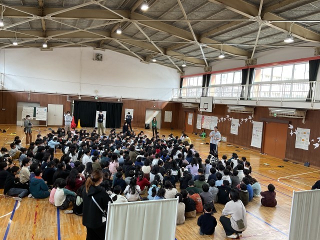 前半は、1年間取り組んできた探究学習の発表を見合い、交流をします。