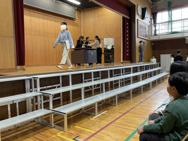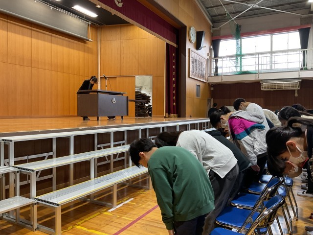 今日は、卒業式に向けて、本番と同じように通す予行練習を行いました。