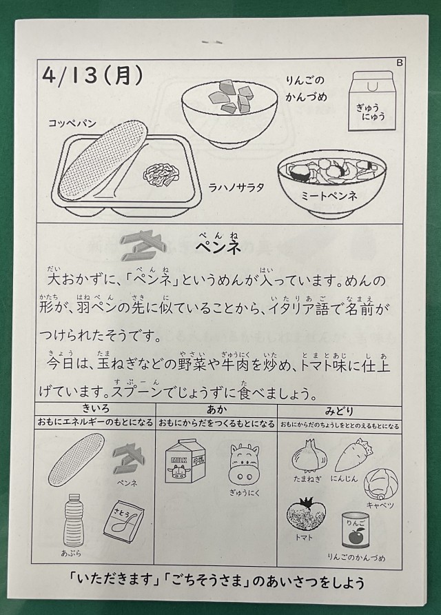 今日の給食のメニューは