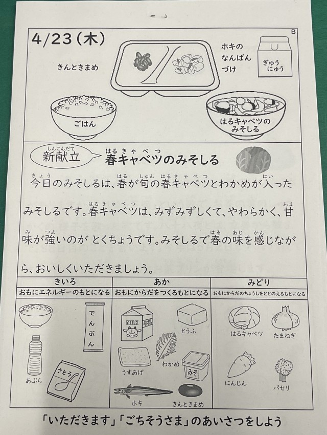 春キャベツの柔らかさを活かした甘みのある味噌汁でした。