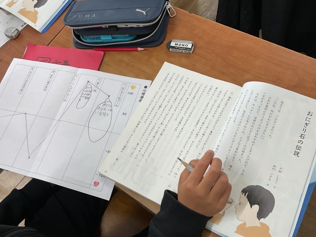 5年生の国語では、「おにぎり石の伝説」を学習していました。