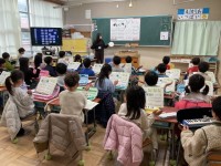 オースティン先生の6年外国語科の授業の様子です。『iPad』を使って、英語で「枚方市の名物紹介・枚方市のPR」資料を作成しています。この後、1人1人が英語でプレゼンテーション(発表)を行いました。さすが6年生、『iPad』の操作にも慣れてきました。