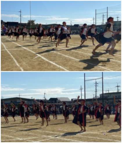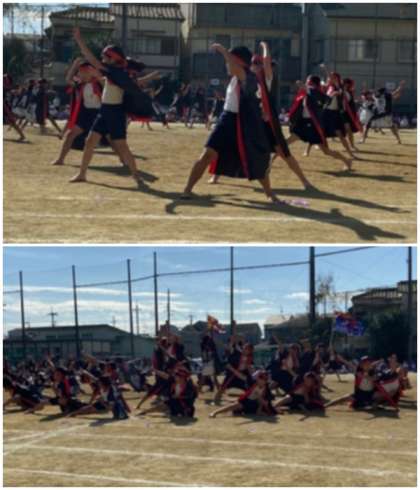 前半の部プログラム5番は、5年生による「本気(ガチ)×勝ち(ガチ)×価値(ガチ)〜超えろ!仲間と共に」」でした。黒の法被を身にまとい、掛け声も踊りも迫力満点でした。股の割れた、低い姿勢から生み出される大きな動きのソーラン節は最高でした。