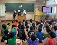 1年生の国語科「とん こと とん」の授業を参観しました。グループに分かれて練習をしてきた音読の発表会を行っていました。暗唱をしている子、抑揚をつけて工夫して読んでいる子、リズムよく大きな声で読んでいる子など、前に出て、少し恥ずかしくしている子もいましたが、みんな自分の担当場所をしっかりと読んでいました。発表の後に聞いていた人たちからの『ほめ言葉』が素晴らしかったです。タブレットを使って、学習の振り返りをしていたことにビックリしました。