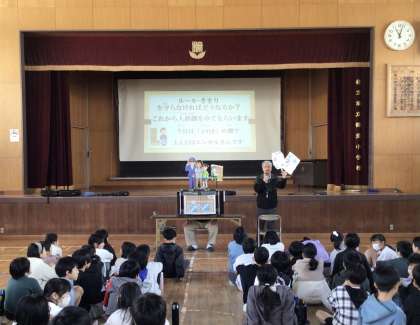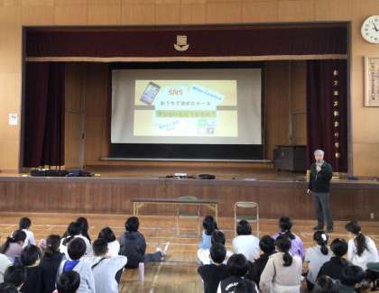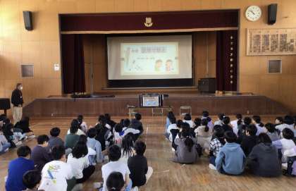体育館で、5年生の「非行防止・犯罪被害防止教室」を