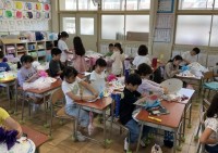 6年生が、一生懸命、グルグルと巻いています。