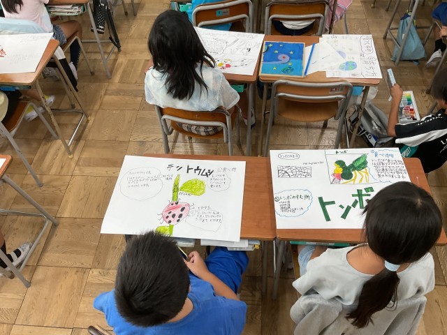 3年生 理科 調べた昆虫について発表しました 公開日 2025/10/02 更新日 2025/10/02 津田小っ子の今をお知らせします 好きな昆虫を調べて、画用紙にまとめました。今日はいよいよ発表です。まずは、発表の仕方について先生から説明がありました。次に、発表の練習をしてから、いざ本番です。発表の後には、わかったこと、発表の仕方でよかったことなど交流をしました。みんな、よく調べていて「へぇ〜そうなんや〜」と思うことがたくさんありましたよ。勉強になりましたね。 いいね(0)