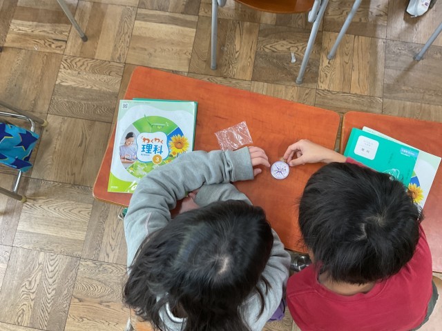 3年生 理科 方位磁針 公開日 2025/10/30 更新日 2025/10/30 津田小っ子の今をお知らせします 先生から赤い針が「北」を指していると説明がありました。文字盤の「北」を赤い針にあわせたのですが・・・んんっ?!なんだか違う方向を指しているものがあるなぁときどき狂ってしまうものもあるので調整が必要です。子どもたちは、針をくるくる回して、きちんと北を指すのかじーっと見つめていました。 いいね(0)