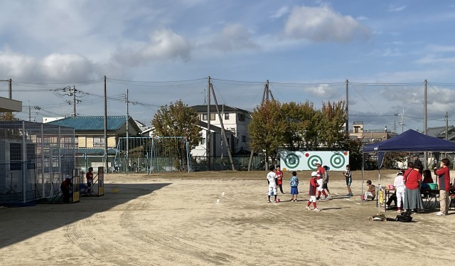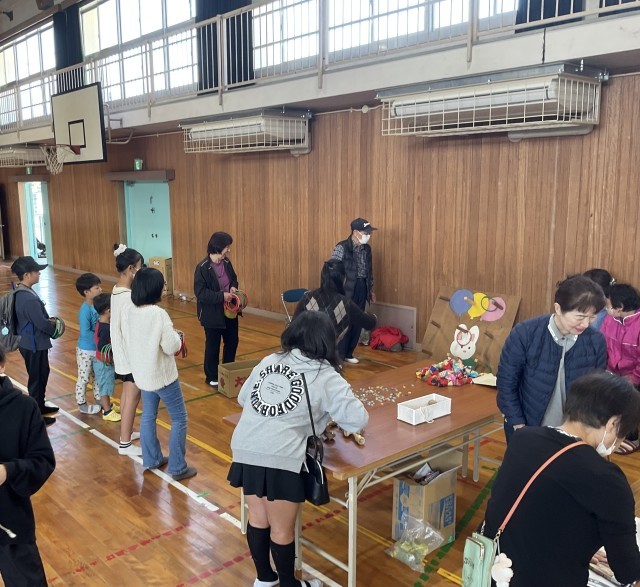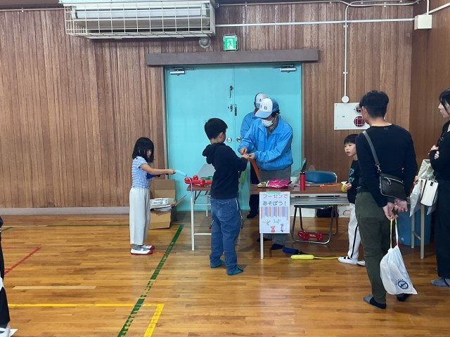 運動場ではストラックアウト、体育館ではバルーンアートやむかし遊びなど